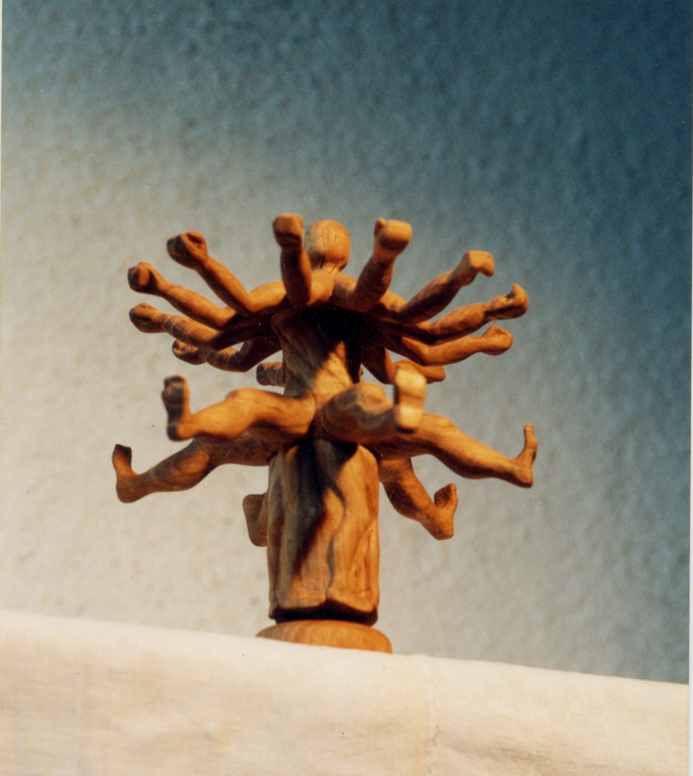 Die kleine Skulptur ist in Teilen gedrechselt und geschnitzt worden.